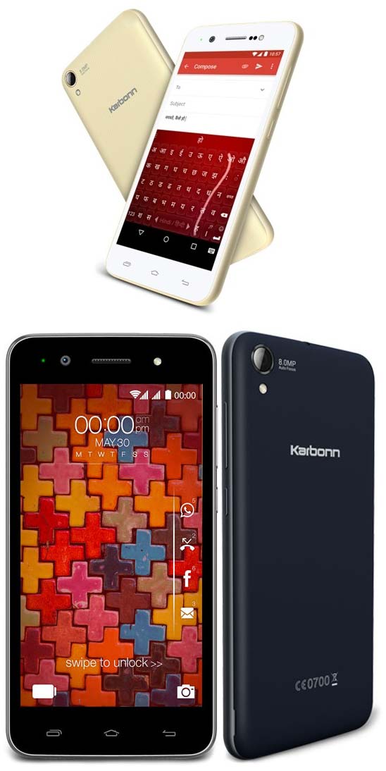 Устройство от Karbonn работает в сетях 3G HSPA+, поддерживает 802.11 b/g/n WiFi, Bluetooth 4.0 и GPS.Доступные цвета: белый с золотистым, белый с тёмно-синим. Цена вопроса составляет почти 7000 рупий (~6083 рубля).