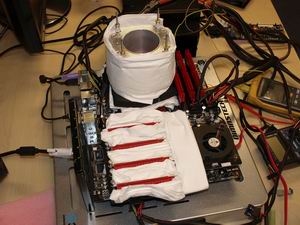 Хорошо, но в разной степени известные забугорные оверклокеры Kinc, Elmor и SF3D решили на днях протестировать последнюю приблуду от ASUS - расширитель слотов PCIe (которые по идее должен использоваться для построения 4-Way SLI) и заодно поставить мировой рекорд в 3Дмарке с использованием столь мощной аппаратуры. Получилось ли это у них ?