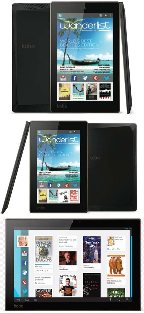 Главный аппарат из трио Kobo Arc 10HD основан на 1.8ГГц SoC Tegra 4 от Nvidia, имеет 10" экран с впечатляющим разрешением 2560x1600 (очередной пинок под зад создателям мониторов с вдвое большей диагональю и 1080p разрешением), 2ГБ оперативной памяти, 1.3МП фронтальную камеру, поддержку WiFi 802.11, Bluetooth 4.0. Работает данная новинка около 9.5 часов.