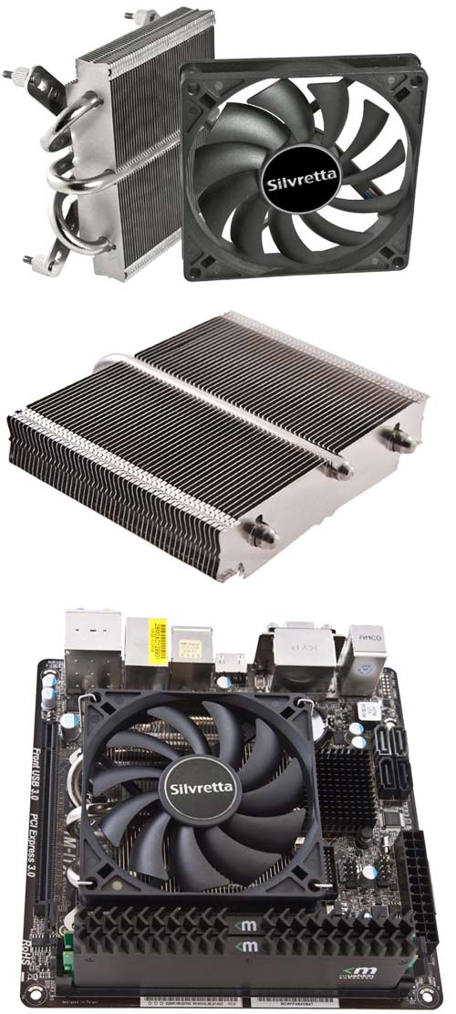 Комплектный вентилятор управляется по методу ШИМ/PWM, скорость вращения его лопастей составляет от 800 до 2800 оборотов в минуту, воздуха он гоняет до 80 кубических метров в минуту, на минимальной скорости вращения шума от Silvretta всего 15 дБ.