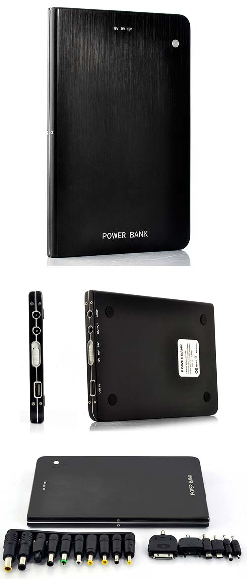 . Устройство имеет размеры 185x125x15мм, весит 460 граммов и умеет заряжать различные мобильные девайсы - от сотовых телефонов и смартфонов до хендхелдов, планшетов и лэптопов (12V/16V/19V 60W или 5V/1A по USB).
