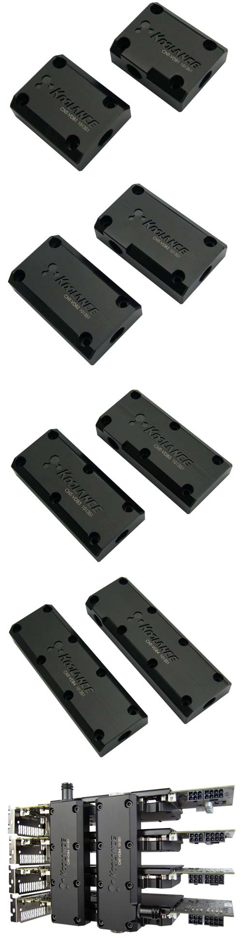 Нам сообщают, что Multi-GPU тандемы с установленными на них водоблоками могут выглядеть довольно неказисто, если не предпринять меры по улучшению этого дела. Именно для этих целей компанией Koolance были выпущены соединительные блоки серии CNT-VDBx.