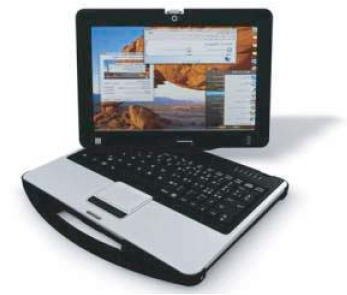 Размер экрана у новинки - 12.1 дюймов, он имеет разрешение 1280х800 и оснащён светодиодной подсветкой. Интересной особенностью этого самого экрана является возможность его разворота, это хорошо видно на фото ниже. Процессор лэптопа - Intel Core i5-540U, без вариантов, а вот памяти можно поставить от 2 до 8ГБ, также предоставлен выбор между винчестером или SSD, по вкусу (и кошельку). Далее стандартный набор - интегрированная графика (что говорит о не игровом применении новинки), гигабитная "сетевуха", 1.3МП веб-камера, картридер для SD/SDHC, опциональный Bluetooth 2.1 и обязательный WiFi. Ёмкость батареи - 5200мАч. Каким-то непостижимым образом строение ноутбука препятствует пылеобразованию, проникновению в него влаги и грязи.