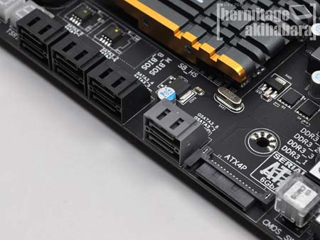 Новинка основана на чипсете AMD 990FX, работающим на пару с северным мостом SB950, она поддерживает процессоры серии FX (кодовое имя Zambezi), сокет AM3+. На плате располагается четыре слота для DDR3 памяти, восемь портов SATA 6Гбит/с, шесть из которых "не родные", работающие от контроллера стороннего производителя (в данном случае это Marvell). Для видеокарт места также полно - на системной плате аж 6 слотов PCIe x16, с поддержкой и SLI и CFX. Портов USB 3.0 - четыре, но на задней стороне платы их лишь два, остальные на панельке. Есть у новинки и гигабитный ethernet порт, 7.1 канальный звук, порт FireWire и два порта eSATA.