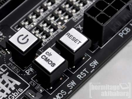 Для оверклокеров и просто продвинутых пользователей имеется debug-экранчик и кнопки сброса, включения и выключения, а также очистки CMOS. Питание осуществляется по схеме 8+2, печатная плата изготовлена по принципу (даже не придумать, как эту маркетинговую штуку ещё обозвать) Ultra Durable 3.