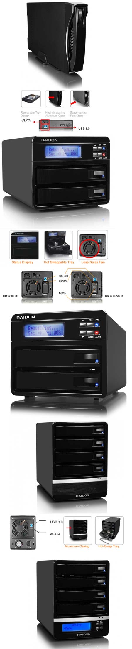 Какое-то творческое озарение посетило компанию RAIDON и потому, наверное, она поспешила представить нам сразу три внешних устройства (некоторые из которых - с подвидами) для создания легко подключаемых RAID-массивов.