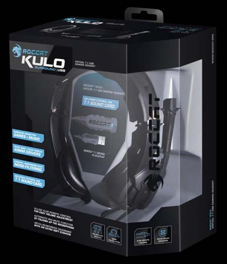 В отличие от Kulo, что показывали нам в феврале, данный девайс выдаёт 7.1 звук, получаемый благодаря внешней USB "звуковухе", идущей в комплекте с устройством. А в остальном устройство не далеко ушло от своего стерео-собрата. Вес гарнитуры - 178 граммов. Звук поступает не с 3.5мм коннекторов "джек", а по USB кабелю и выдаётся в уши пользователя через пару 40мм неодимовых динамиков. Как и в любой нормальной гарнитуре, в Kulo имеется микрофон с функцией шумоподавления. Характеристики наушников: диапазон воспроизводимых частот - от 20Гц до 20кГц, выходная мощность - 80mW, импеданс - 50 Ом.