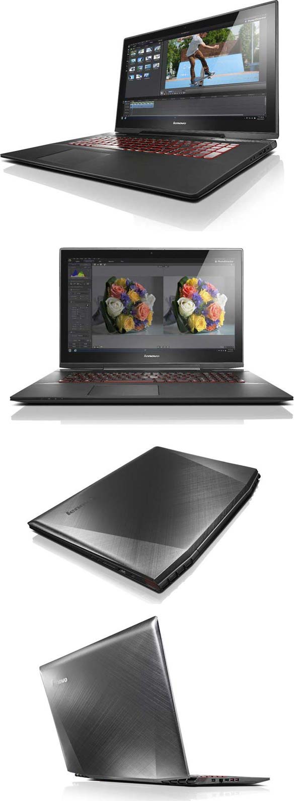 Аппарат именуется IdeaPad Y70 Touch и представляет собой игровой ноутбук с 17" Full HD экраном и процессором Core i7-4710HQ (Haswell). Игровым аппарат может считаться из-за наличия видеокарты GeForce GTX 860M с 4ГБ памяти. Объём оперативной памяти равен 16ГБ, чего явно хватит на игровые нужды.