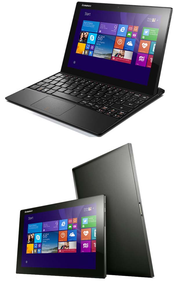 Размеры агрегата без учёта клавиатуры: 256.8x172x9.3мм, вес равен 549 граммам. Управляет аппаратом Windows 8.1 с Bing, питается устройство от батареи на 6800 мАч, функционирует от которой до 7 часов. Продукт Lenovo имеет 2МП фронтальную HD камеру, поддерживает 802.11b/g/n WiFi (2.4 и 5ГГц) и Bluetooth 4.0, имеет видеовыход Micro HDMI и два USB 2.0 в клавиатуре-доке.