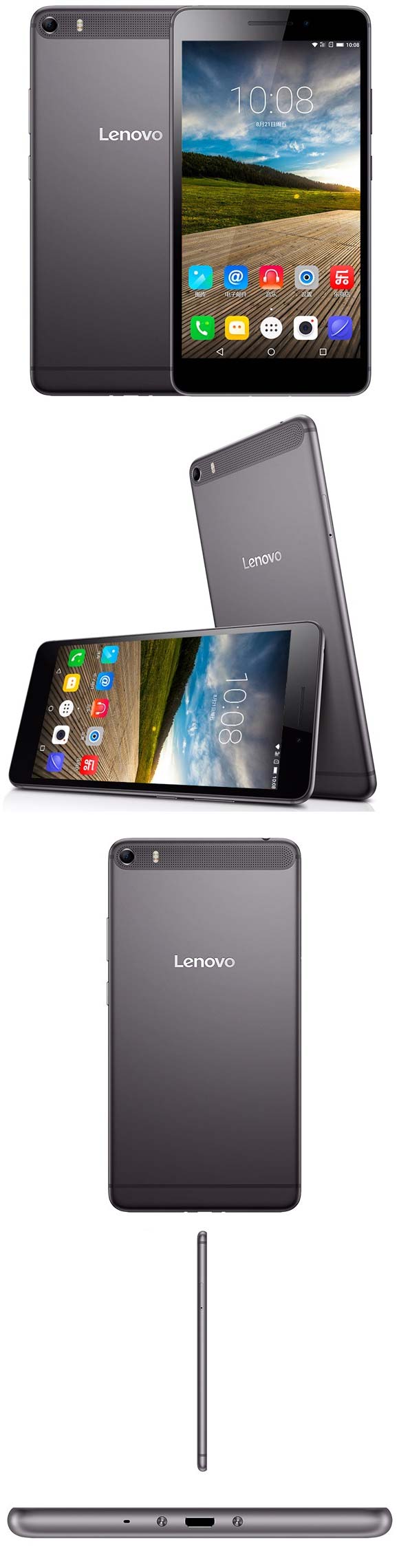Творение Lenovo имеет размеры 186.6x96.6x7.6мм, весит 220 граммов, цвет корпуса - серый. Тыловая камера получила 13МП сенсор и LED вспышку, камера фронтальная имеет 5МП сенсор. Аппарат поддерживает 802.11a/b/g/n/ac WiFi, GPS и Bluetooth 4.0, работает от литий-ионной батареи на 3500 мАч, функционирует в сетях GSM, CDMA, WCDMA, EVDO, TD-SCDMA и TDD-LTE на пару с FDD-LTE.