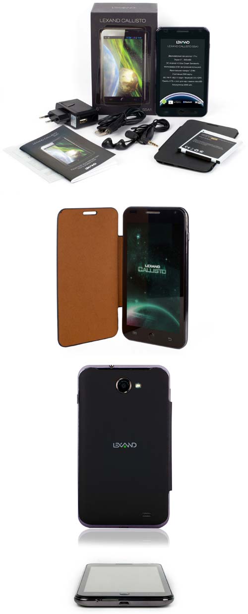 Интересной особенностью Lexand Callisto является комплект поставки. Помимо привычных компонентов (зарядное устройство, гарнитура, кабель USB) в него входят сразу две задние панели. Первая представляет собой обычную крышку аккумуляторного отсека. Вторая же снабжена специальной панелью, которая прикрывает дисплей, защищая его тем самым от повреждений. Фактически, вторая панель играет роль «чехла-книжки». Стоимость аксессуаров такого типа составляет не менее 1 000 рублей.