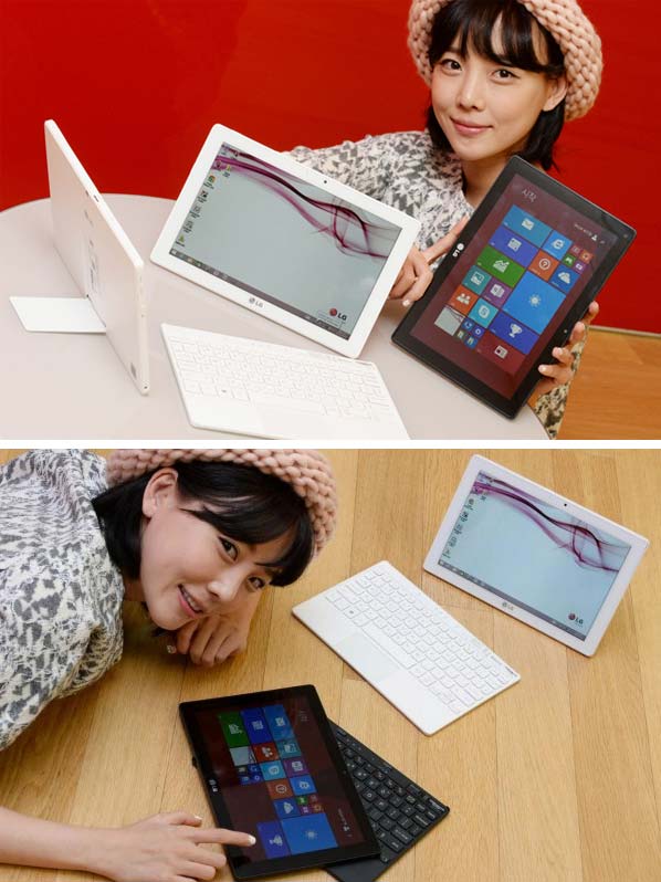 Планшет 2-в-1 LG Tab Book Duo в обществе азиатской красотки