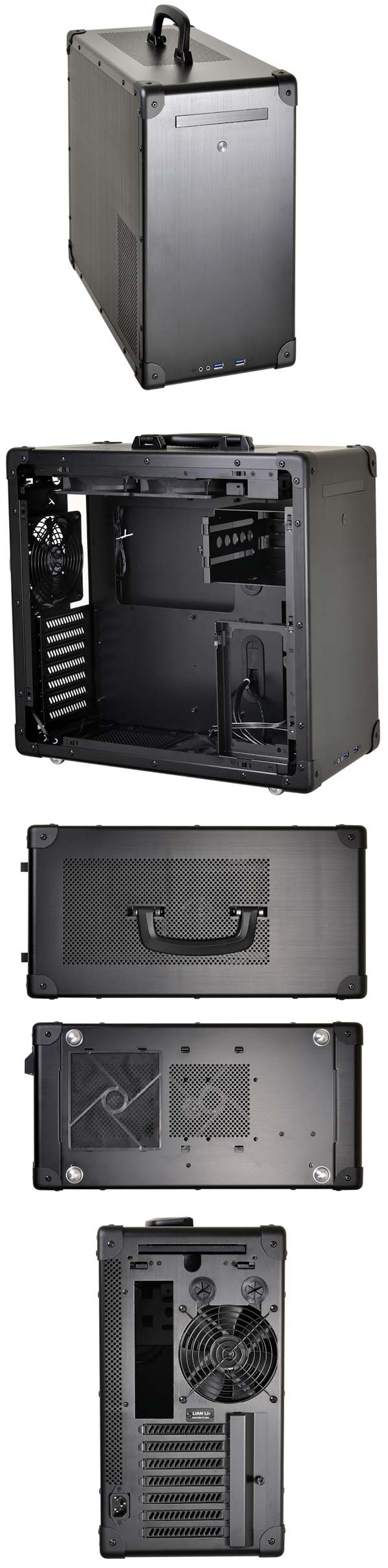 Новое творение компании Lian Li имеет порты USB 3.0 в количество двух штук и HD аудио коннекторы на панели ввода/вывода. Лимит на длину видеокарты составляет 300мм, на высоту процессорного кулера - 160мм, на длину блока питания - 160мм.