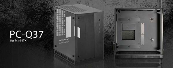 Как и сказано в заголовке, Mini-ITX корпус PC-Q37 создан, по большей части, из алюминия и закалённого стекла. Его размеры составляют 237x345x346мм, как фронтальная (частично), так и боковая панель (одна из двух) выполнены из закалённого стекла, когда как каркас из алюминия, вес такого решения составил 5.25КГ.