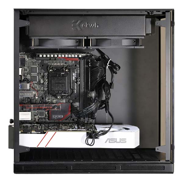 Корпус двухкамерный, блок питания располагается в боковой части снизу, лимит на его длину составляет 220мм, заявлена совместимость с SFX и SFX-L моделями. Видеокарта ограничена 320мм места по длине, процессорный кулер - 130мм по высоте. Система охлаждения отсутствует напрочь, два 120мм вентилятора с фронта, два 80мм с тыла и два 120мм в днище придётся покупать самостоятельно, если на то будет необходимость.