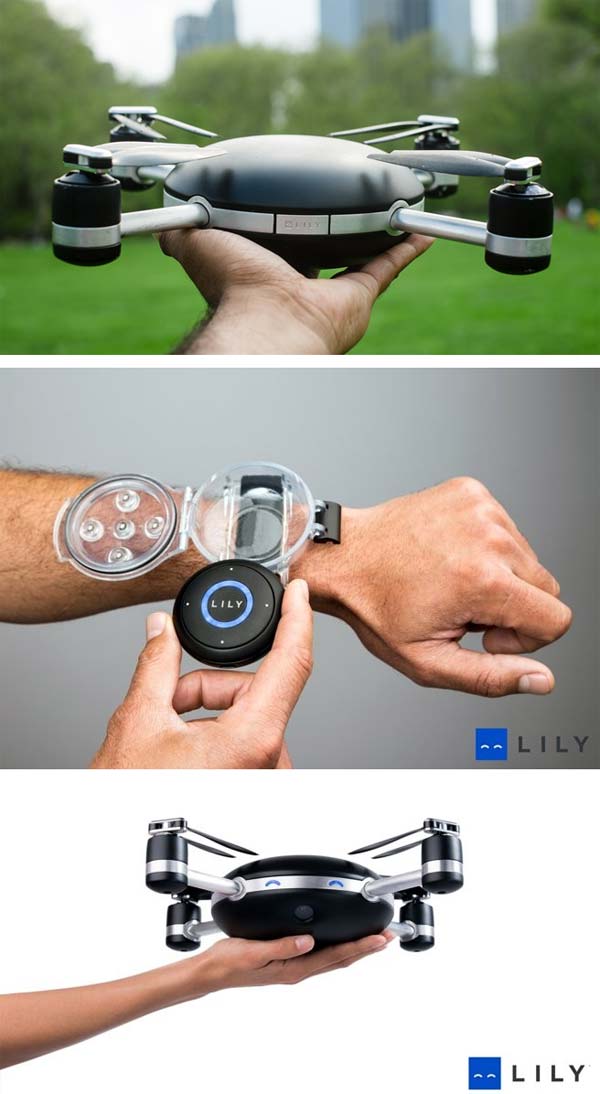 Изделие так и именуется - Lily, оно создано для съёмки себя любимых, причём без участия кого-либо со стороны в качестве оператора. Достаточно одеть особый браслет, который позволяет камере-квадрокоптеру отслеживать перемещение объекта съёмки и дело в шляпе - дрон отлетит на нужное расстояние и будет снимать весь экшн, будь то спуск с горы на доске для сноубординга или же на байдарке по горной реке.