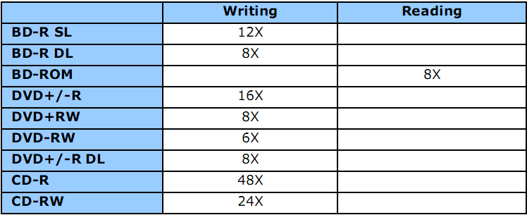 - Скорость записи BD-R SL дисков - 12x, рекордная на сегодняшний день