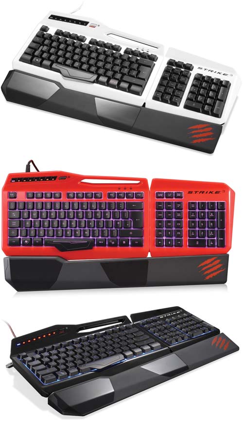 Клавиатура S.T.R.I.K.E.3 будет доступна в чёрном, белом и красном цветах, появиться она должна в продаже лишь осенью, её стоимость компания Mad Catz пока что не озвучила.