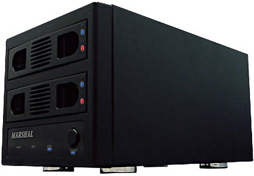 Охлаждением накопителей внутри продукта Marshal занимается 70мм вентилятор, спецификации которого не уточнены. Работающие внутри аппарата накопители можно заставить сотрудничать в RAID 0,1 или же JBOD массивах. На корпусе новинки имеются светодиоды активности HDD/SSD.