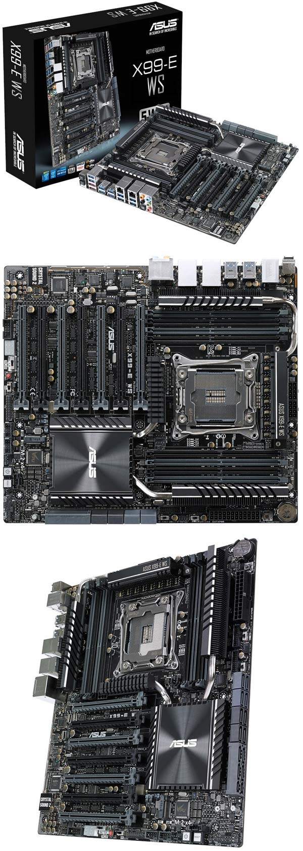 Новинка поддерживает 4-way SLI/CFX, даёт возможность вдоволь поиграться с RAID картами и PCIe SSD, попробовать в освоении фирменные "фичи" Q-Code Logger и Dr. Power. Компоненты для ASUS X99-E WS, якобы, отбираются вручную, так что все они отменного качества.
