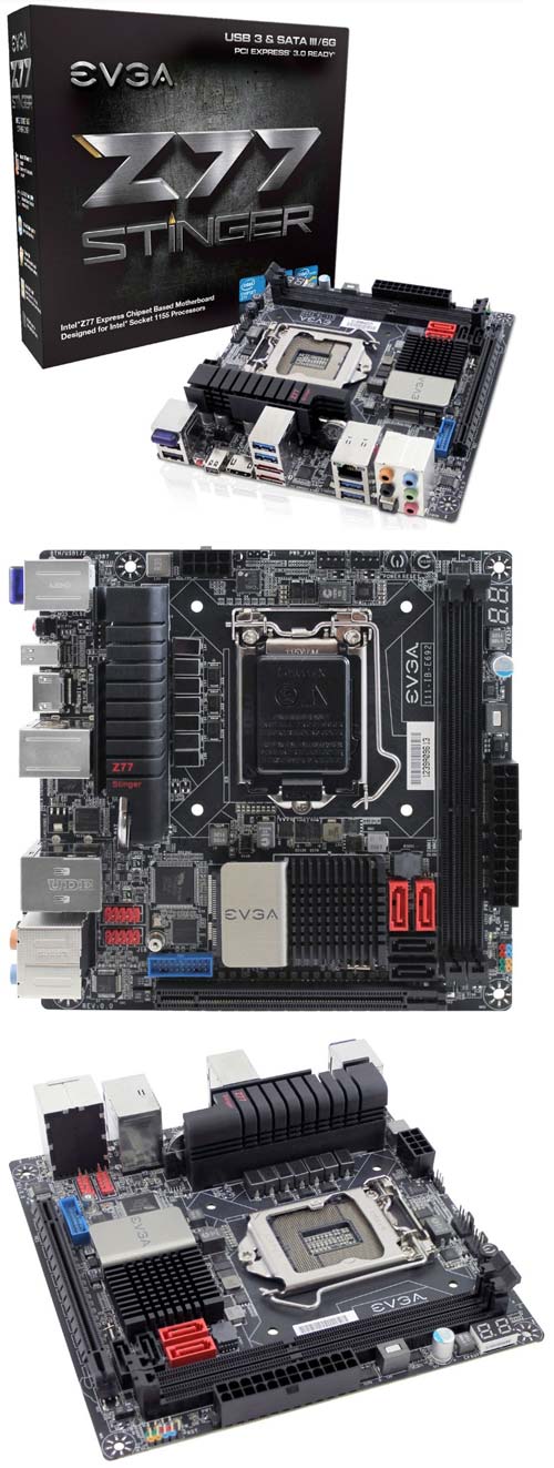 Материнская плата EVGA Z77 Stinger собственной персоной