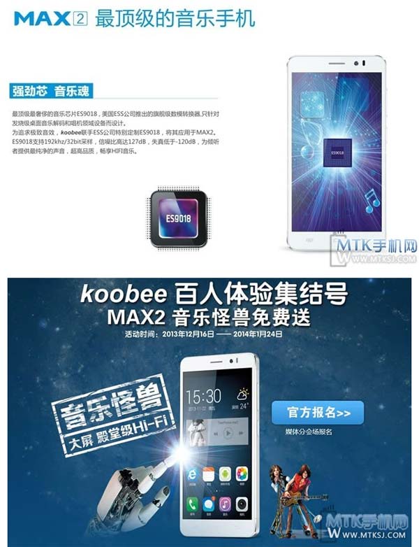 Данных о новинке пока что немного - у аппарата 5.5" экран с Full HD разрешением, неизвестно какая SoC (но явно обладающая не менее чем четырьмя ядрами) и 13МП тыловая камера. Всё это заключено в тонкий 7мм корпус. Изюминкой MAX2 стал используемый аудиочип - ES9018, может выдавать звук с семплингом 192кГц/32-бит, отношение сигнал-шум составляет 127 дБ, такой же чип Vivo использовала в некоторых своих продуктах (например в представленном недавно Xplay 3S).