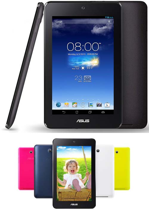 Места для ОС и файлов пользователя выделено 16ГБ, расширить его можно до 32ГБ с помощью карточек microSDHC, плюс ASUS выделяет 16ГБ места в "облачном" хранилище данных на один год. Доступные цвета корпуса планшета MeMO Pad HD 7: розовый, белый, жёлтый, синий и чёрный. Камер у новинки две - 5МП задняя и 1.3МП фронтальная.