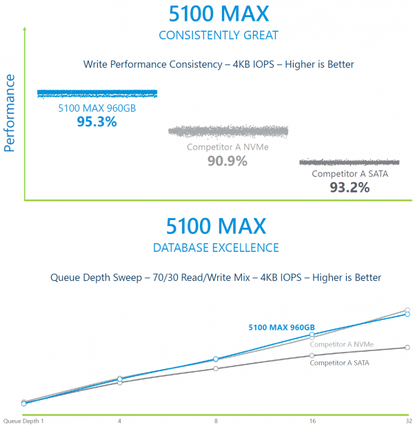 Изделия представлены в 2.5" и M.2 форм-факторах, исключение составляет серия 5100 MAX, в ней есть лишь 2.5" накопители. Новинки основаны на контроллере Marvell 88SS1074, используют интерфейс SATA 6Гб/с и 3D TLC NAND флеш память.