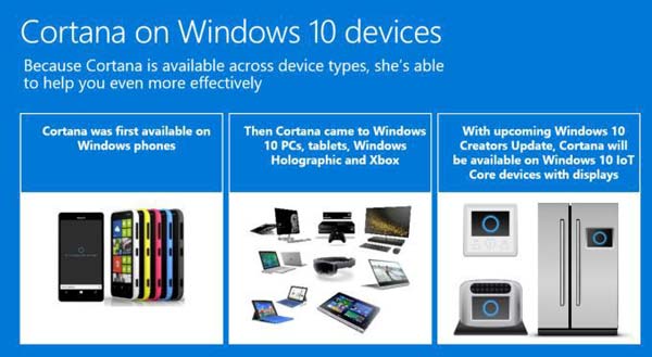Далее на повестке дня интеграция Cortana во все устройства, управляемые Windows 10 для IoT. По задумке американской корпорации, её голосовой помощник можно будет использовать со "всем, у чего есть экраны", т.е. с новыми моделями холодильников, кондиционеров, телевизоров, термостатов и так далее (не говоря уже про смартфоны, консоли и планшеты).