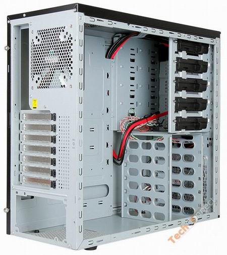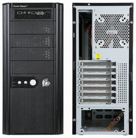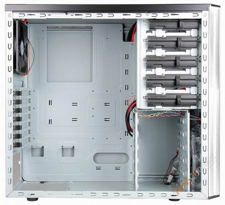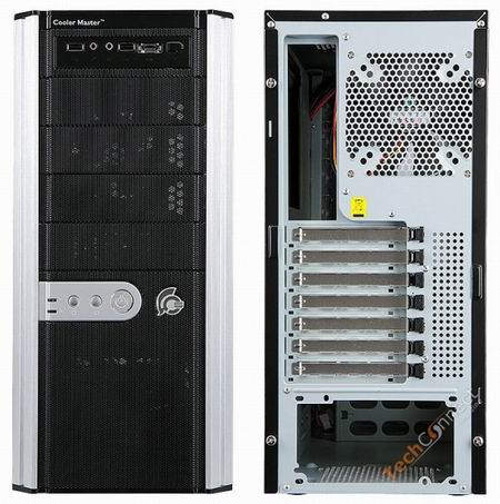 Габариты новинки - 202x440x485мм, на передней панели мы можем увидеть четыре слота для 5.25 дюймовых устройств, два USB 2.0 порта, eSATA порт, FireWire и аудиовход. Изготовитель не поленился приложить некий переходник, что позволит установить два 2.5 (или 1.8) дюймовых устройства в места для 3.5 дюймовых, это довольно разумно, учитывая растущую популярность SSD. В шасси предустановлены два вентилятора - 140мм (1200 оборотов в минуту, уровень шума - 19 децибел) с голубой светодиодной подсветкой спереди и классическая стодвадцатка (1200 оборотов в минуту, уровень шума - 17 децибел) сзади. Цветовые решения - полностью чёрный или же чёрный в унисон с серебряным.