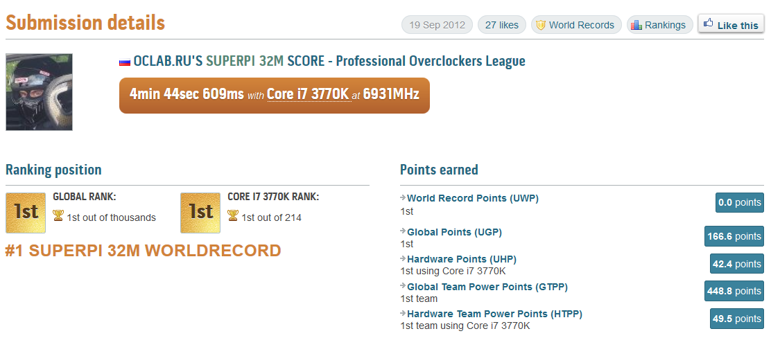 Итак, российским оверклокерам удалось достичь результата 4 минуты 44,609 секунды в SuperPI 32M! Поздравляю соотечественников с рекордом и желаю дальнейших успехов и свершений!