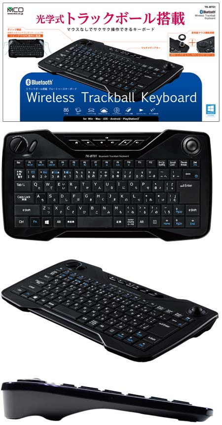 Изделие называется TK-BT01 и представляет собой клавиатуру с трекболом, общение которой с различными совместимыми устройствами осуществляется по Bluetooth 3.0. Размеры японской новинки следующие: 332x179x37мм, вес равен 480 граммам. Отличительной чертой аппарата является наличие трекбола, видимо у данного устройства ввода ещё есть сторонники.