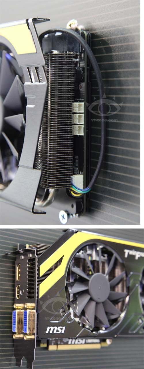 Что известно о новинке? Толком - ничего, ибо частоты не раскрыты публике. Зато указано, что у новой "Молнии" 2ГБ памяти (народ ожидал 4ГБ, несмотря на их очевидную бесполезность), улучшенное питание, заводской разгон (западные коллеги считают, что примерно на 10% поднимут рабочие частоты), небезызвестный кулер Twin Frozr IV, плюс возможность мониторинга и, вроде бы, контроля напряжения на графическом ядре, памяти и PLL посредством MSI Afterburner. Из видеовыходов имеется один DisplayPort, один HDMI и два DVI. Питание осуществляется через два 8-и пиновых коннектора.