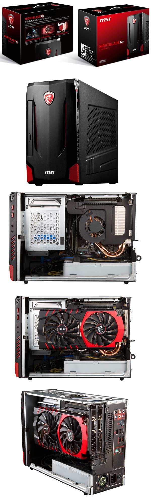 Nightblade MI имеет размеры 127.6x234.8x340.6мм, питается устройство от БП на 350 ватт. Системная плата ПК основан на чипсете B85 от Intel, в качестве процессора можно выбрать между несколькими моделями Core i7 4-го поколения. За обработку и вывод графики отвечает видеокарта GeForce GTX 960 с 2ГБ GDDR5 памяти.