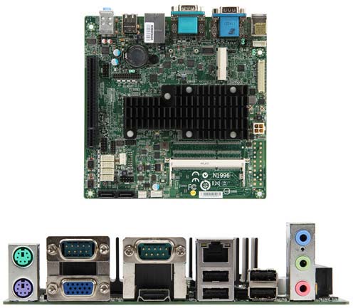 Порты есть следующие: два PS/2, три аудиовыхода (звук - шестиканальный), шесть USB 2.0 (из них пара реализована через хедер), 8 GPIO (из них 4 - GPI, 4 - GPO), шесть COM (внешних только два), да слоты PCI и Mini-PCIe с поддержкой m-SATA/беспроводных функций, есть и Ethernet порт. Мощности изделия хватит на то, чтобы гонять старые игры, смотреть видео в 1080p, да сёрфить по Интернет, хотя истинное предназначение изделия скорее не домашнее. Питается новинка от ATX разъёма (в случае с D2550) или же от 12-и вольтного адаптера питания (тут речь идёт о N2800). Охлаждение процессоров пассивное.
