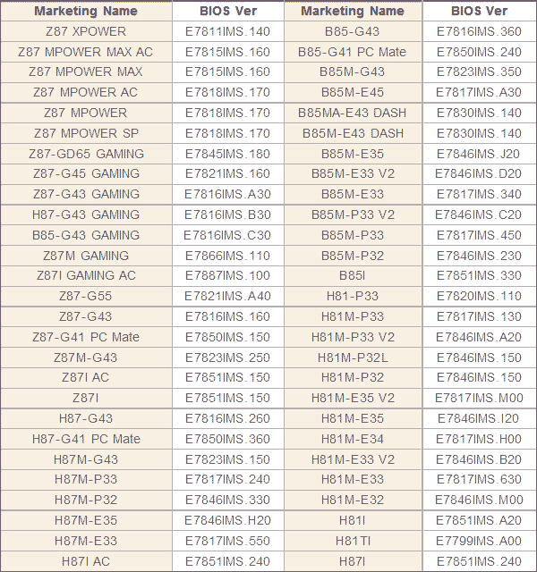 Для тех, кто почему-то видит смысл переходить с Core четвёртого поколения на Haswell Refresh (сложно назвать это пятым поколением, хотя помня историю с Sandy и Ivy Bridge, то можно) вот список материнских плат, которые полностью совместимы с новинками от процессорного гиганта, обязательно стоит обратить внимание на версии BIOS, необходимые для совместной работы новых процессоров и плат: