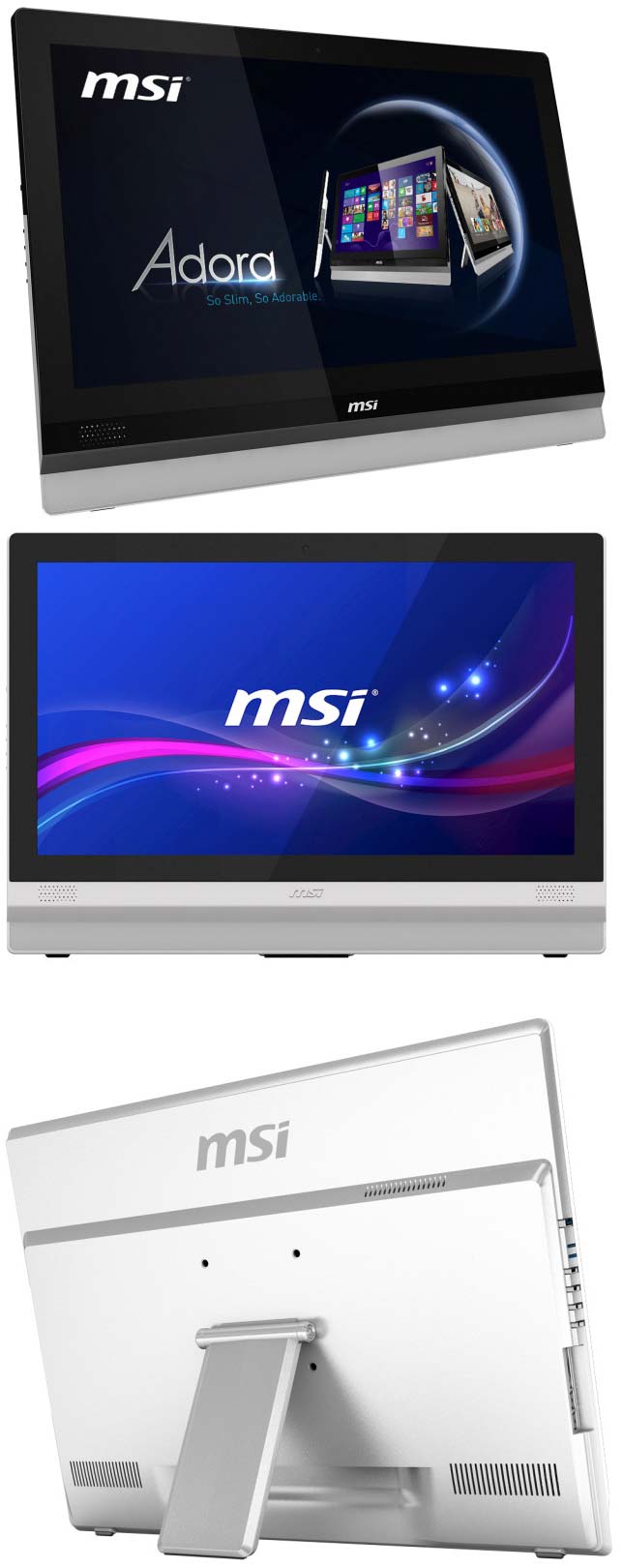 Особой гордостью MSI стало наличие у моноблоков Adora24M и Adora24G новых, не мерцающих 23.6" Full HD экранов с LED подсветкой и поддержкой 10-точечного Multi-touch. В качестве накопителя используется 1ТБ 2.5" винчестер (5400 об/мин) или же SSD такого же форм-фактора.