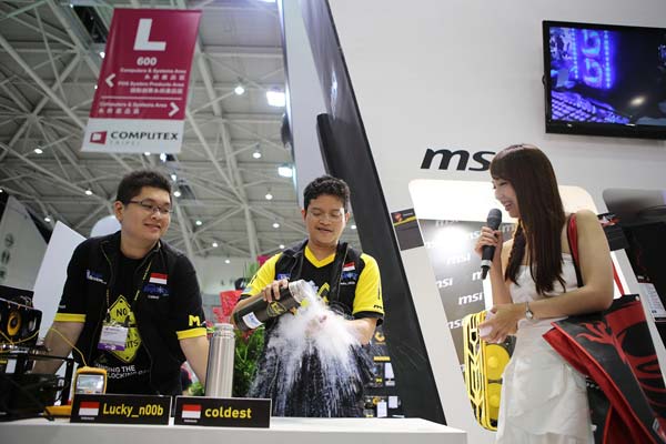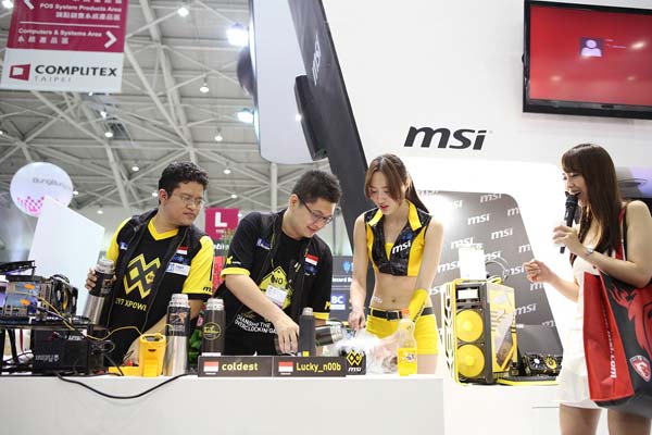 Помимо демонстрационной сессии разгона, оверклокеры и очаровательные девушки со стенда MSI также продемонстрировали зрителям, как использовать жидкий азот для приготовления сорбета, и помогли немного охладиться этим жарким тайваньским летом.