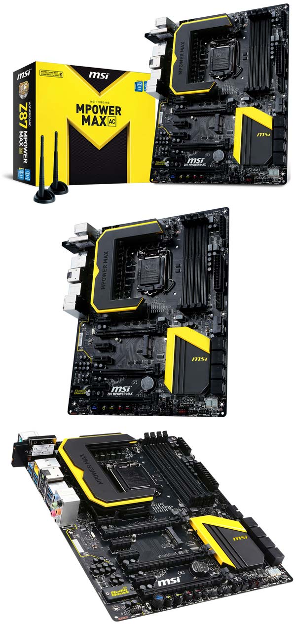 Новинка получила название Z87 MPower MAX AC, это весьма и весьма крутой продукт, основанный на чипсете Z87 Express, предназначенный для процессоров LGA1150. У изделия MSI 20-фазовое питание, четыре слота для оперативной памяти DDR3, три PCI-Express 3.0 x16 (x16, x/8x8, x8/x4/x4), три PCIe 2.0 x1 и один mPCIe, на этот раз обошлось без PCI.
