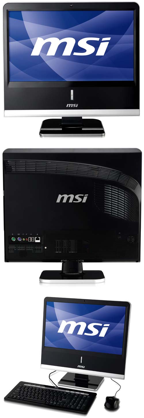 Сообщается, что WindTop AP1920 имеет диагональ экрана 19 дюймов, разрешение дисплея составляет 1366x768. Размеры самого компьютера от MSI следующие: 450x420x35мм, вес равен 7КГ. Аппарат поддерживает 802.11 b/g/n WiFi, но в Сеть может выходить и через Ethernet порт. Также, в распоряжении владельца новинки картридер 6-в-1, веб-камера и DVD-RW привод. AiO ПК можно поставить на стол как обычный монитор или же повесить на стену.
