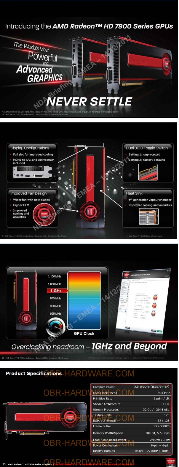 Также известный блоггер OBRovsky вновь порадовал общественность оперативностью слива официальной инфы по новинке, стали доступны слайды с фотографиями видеокарты, а также её спецификациями и рекламными материалами, давайте полюбуемся: