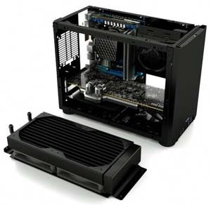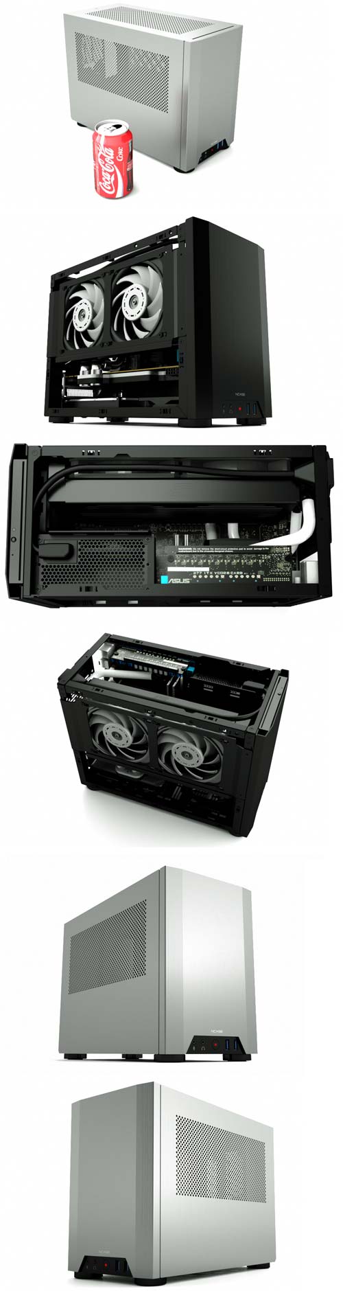 Шасси NCASE M1 имеет размеры 250x160x338мм, вмещает в себя системные платы Mini-ITX и Mini-DTX, поддерживает установку 120мм/240мм СВО, совместимо с блоками питания форм-факторов SFX и ATX (второй - с ограничениями). У новинки три 3.5" местечка и столько же мест для 2.5" накопителей.