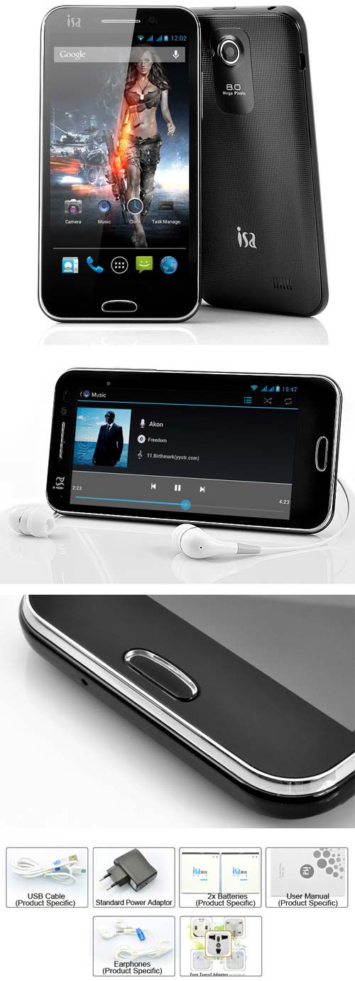 Новый китайский смартфон управляется Android 4.1, имеет сенсор приближения, G-сенсор и светосенсор, а также акселерометр, порт Micro USB, 3.5мм выход на наушники и слот для карточек Micro SD. Размеры Isa A19 составляют 135x70x11мм, весит от 125 граммов. Полученные сертификаты: CE, FCC и RoHS.