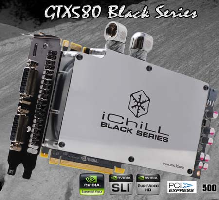 Вот фотографии "злой" (частоты референсные, охлаждение - Arctic Cooling Accelero Xtreme Plus) версии карточки от данного производителя - GTX 580 Black Galaxy: