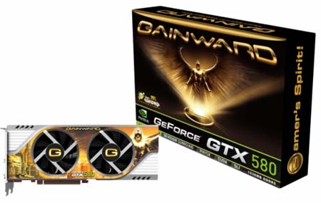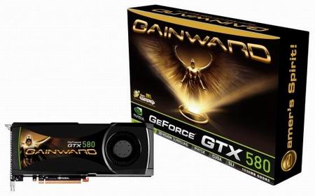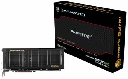 Две вариации на тему GTX580 представила Gainward - полностью референсную карту и так называемую Golden Sample-редакцию с заводским разгоном (и референсной СО). Позже показали GTX580 Phantom с почти референсными частотами но 3ГБ памяти.