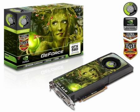 Ещё один референс с симпатичной девахой нарисованной на карточке и коробке. Кодовое имя модели - NGTX580-1536PI-F.