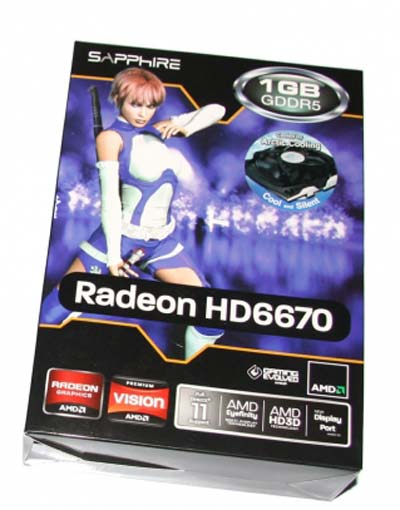 У Radeon HD 6670 480 потоковых процессоров, 24 текстурных блока, 1ГБ GDDR5 памяти со 128-битным интерфейсом. Частотная формула следующая: 800/4000Мгц (ядро и память). Энергопотребление - 66 ватт, охлаждение активное. Рекомендуемая стоимость - 99 долларов США.