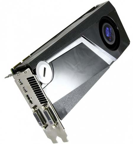 А вот фотография 1ГБ версии (частоты референсные, кулер - не референсный, стоимость - 240 евро):