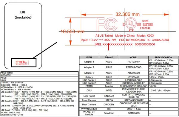 Поступили некоторые сведения о "начинке" нового планшета от компании ASUS, который рано или поздно будет представлен публике, а пока проходит сертификацию в FCC.