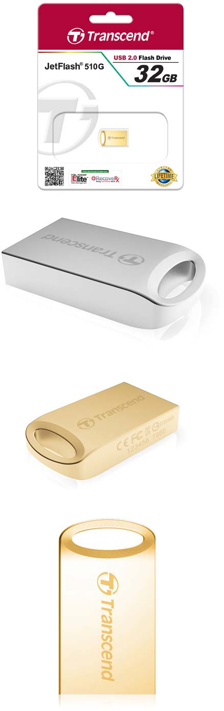 Все аппараты серии получили сертификаты CE, FCC, BSMI, имеют защиту от пыли и от падений с небольшой высоты (как-никак, шасси изделий металлические). Флешки JetFlash 510 поставляются в корпусах двух цветов - серебристом и золотом, ёмкость продуктов серии составляет 8, 16 и 32ГБ.